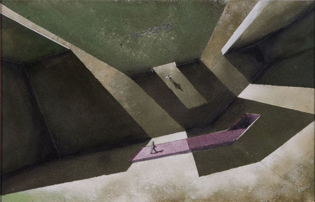 - El malacitano ROMERO ha configurado y geometrizado colosalmente los espacios de una urbe solitaria, sólo hormigón, muros, sombras, trazados.