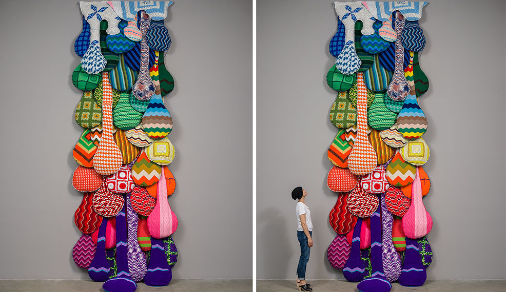 Y los aspectos constitutivos de esas piezas, sean esculturas e instalaciones, tienen un componente esencial en el color, en una arquitectura cromática que refuerza hasta límites insospechados una visión de la creatividad muy fecunda.