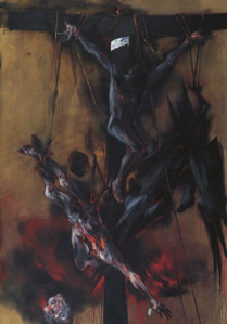 Sobrecoge tal hondura y despliegue de imágenes, es un sentimiento del horror tan de cerca y tan inmediato que casi lo tocamos. Y no hay espacios para la huida ni ocasión para el rechazo porque la fuerza plástica de esta figuración no nos permite volver la mirada por ser un arte de la desesperación, incluso de la falta de esperanza, que reconocemos en el latido inmenso, espeluznante de esos iconos tan eficaces en su transmisión del mensaje.