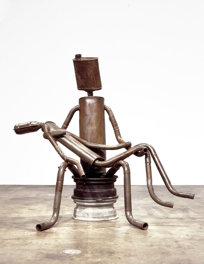 La obra del norteamericano JOHNSON constituye la ocurrencia elevada al máximo. Sin dejar la sorna y el humor, escoge cualquier material que le sirva para visualizar sus esculturas con una agudeza conceptual sorprendente.