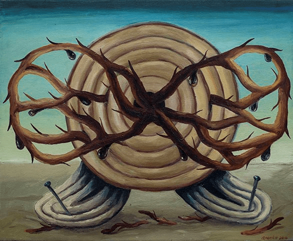 Su obra, a través de un cromatismo que ya se significa por sí solo, inquiere en la plasmación su sentido, el origen de su conformación, al hilo de un discurso que segrega antinomias por doquier.