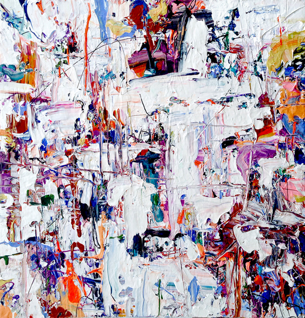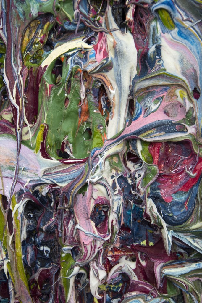 Los borrones y salpicaduras, los rasgos, señales y capas, trazan el mapa orgánico y armónico de cada pieza como si fuese su destino aciago o afortunado, pero sobre todo un vivir errante que se va esponjando en la búsqueda de su identidad indefinida.