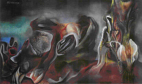 - El norteamericano KAMROWSKI, no muy conocido por estos pagos, empezó siendo surrealista y muy alabado por Breton, pero no se quedó ahí, tenía otras metamorfosis pendientes.