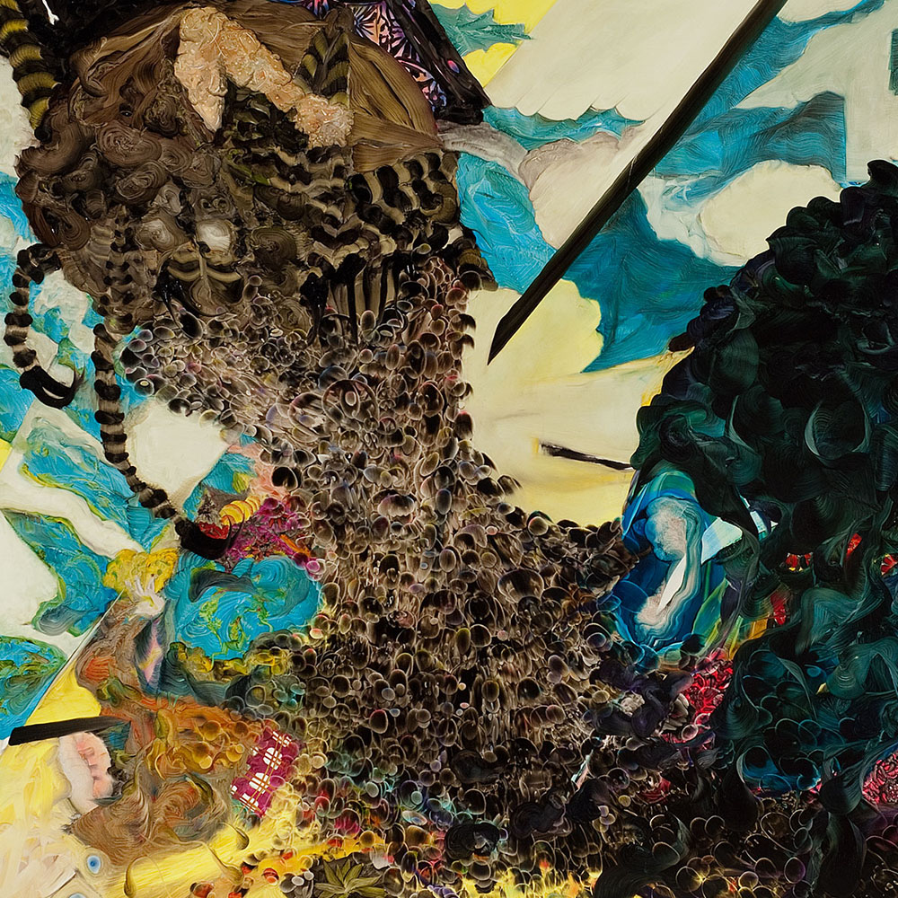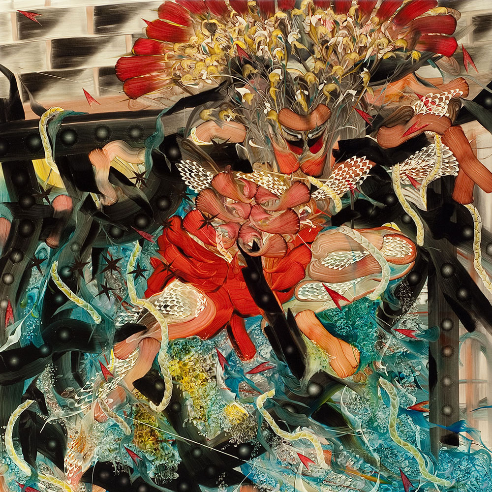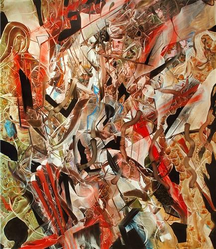- La sensación al contemplar estas obras es que son una baraúnda que esconden el tributo a unos entes que están camuflados dentro de ellas, pero, sin embargo, al momento siguiente nos deslumbran esos espacios repletos y cromáticos en la superficie con la densidad de unas formas que se valen por sí mismas.