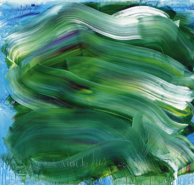 - En la obra del francés MESSAGIER esa significación vuela en trazos gruesos cromáticos, en impulsos de sinuosidad y viento, en arrastres y danzas que traspasan la vorágine ilimitadamente.