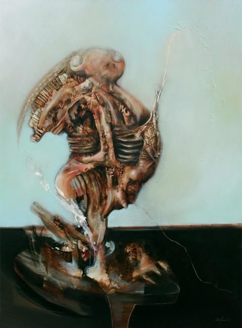 La materia desollada da forma a cuerpos antropomorfos para satisfacer sus necesidades de expresión, la putrefacción la corroe y exige el cumplimiento de un acto final, el retrato de su figura descarnada, herida, corrupta.