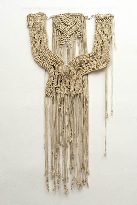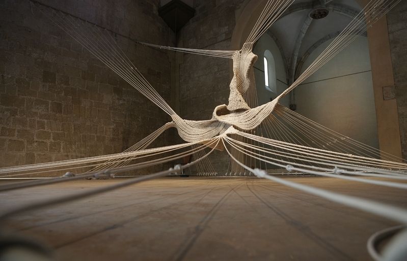 - Por eso, esa tensión de lo artesano, manual y bordado en el espacio de las obras de la catalana MUÑOZ, nos infunde excitación, atracción visual y confabulación. Constituye una trasposición fantástica de lo que puede ser un ente vivo habitando en nuestro entorno, una construcción que nos va envolviendo hasta absorbernos por completo.