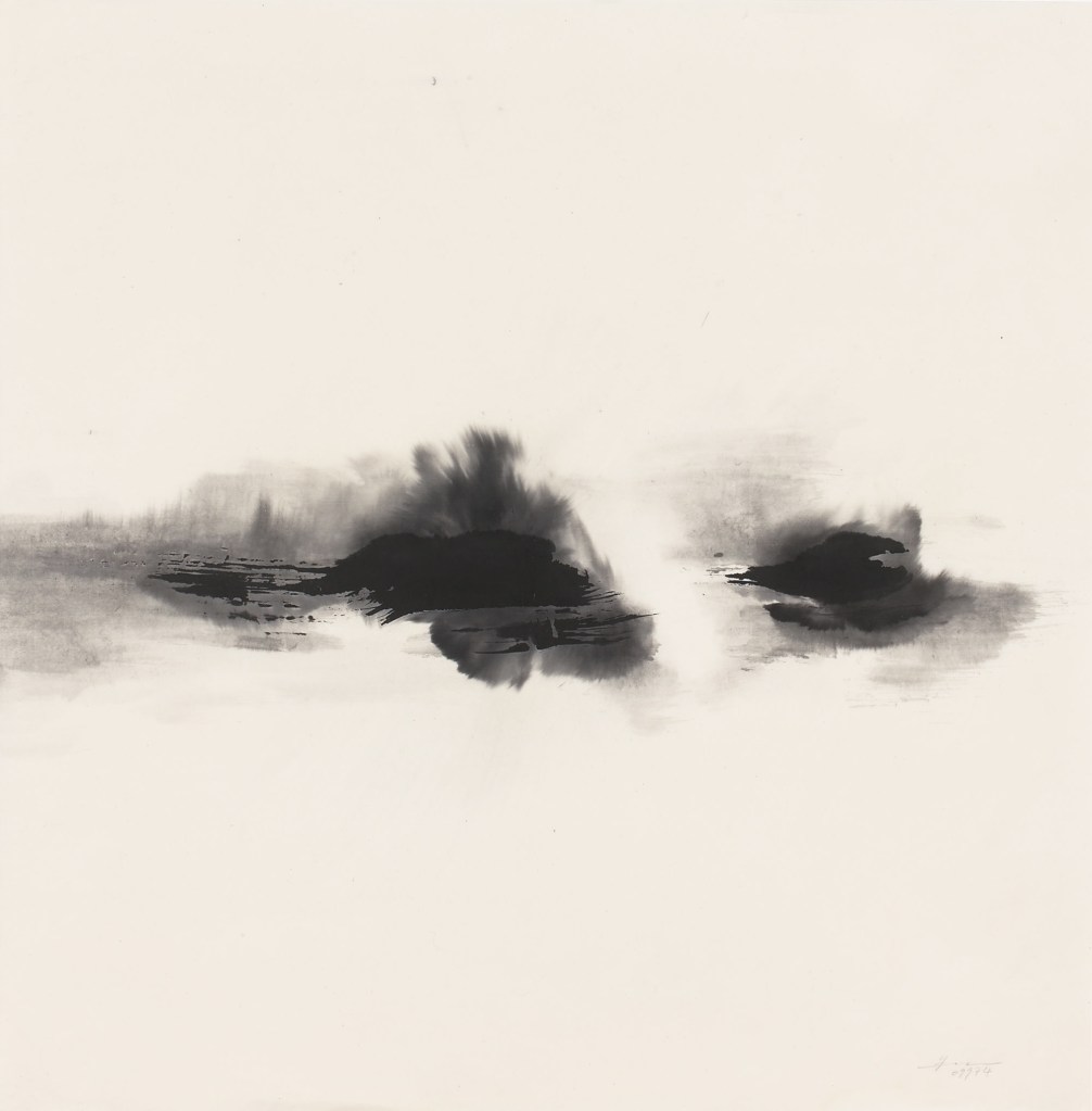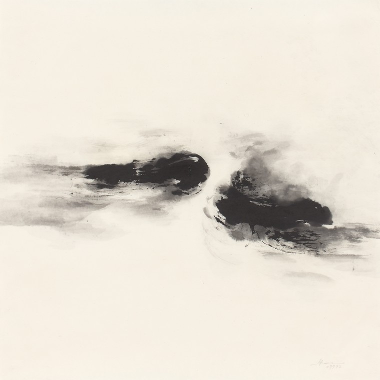 - En la obra del chino LAOZHU la naturaleza y la atmósfera hablan y tratan de confraternizar con la mirada del observador, pese a que las negruras que se han formado enturbian el corazón de un espacio que se conservaba nítido.