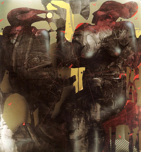 - De esa forma la estructuración de cabezas y cuerpos son entes que asaltan desde el fondo de una realidad que bucea en lo primitivo e histórico, que se convierte en una transmutación densa incardinada en una atmósfera ubicada en el más remoto páramo del sueño.