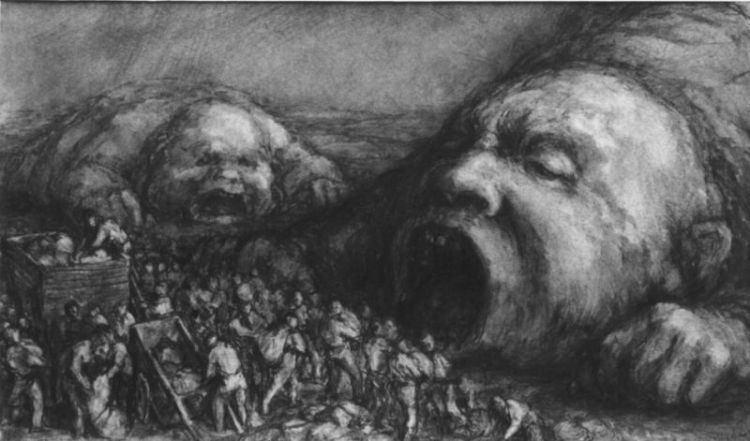 - En tiempos de peste el dibujo es la peor y más elocuente entraña que muestra el malditismo, el que nos lleva al Bosco, a Goya, a Brueghel y a tantos otros que jalonaron la historia del arte con una fantasía que era más real que la misma realidad.