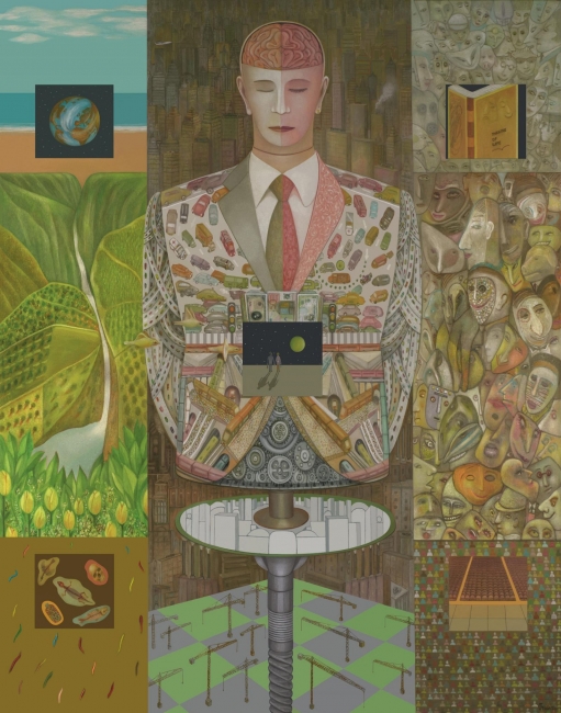 No obvia el madrileño FOLLENTE la crudeza en su obra, solamente la fusiona con el artificio, con una visión que pacta con lo metafísico, lo surreal, con una realidad imaginada desde un pensamiento que se expresa como una reflexión íntima y muy personal.