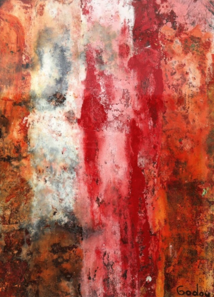 - Pues la del cubano GODOY cubre esa Nada con una liberación de la vivencia de la materia, de la ocupación de la superficie con sedimentaciones granulosas, campos arados, geografías plásticas, que se extienden a manera de surcos y barbechos.