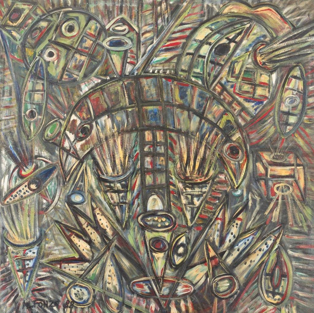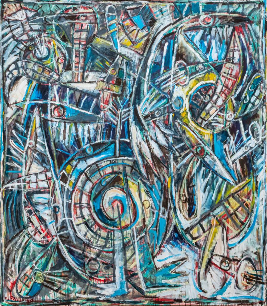 - En sus obras el cubano ALFONZO resume plásticamente los hallazgos soñados de un reencuentro con una iconografía que es su origen y con la que convivió muchas décadas, conduciéndolos mágicamente como una danza.
