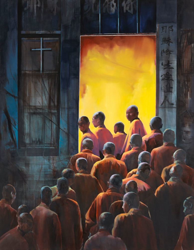 - El tamiz luminoso atraviesa la superficie, lo que permite visualizar figuras que llevan callando muchos silencios, que inspiran al chino XINMING una plástica que irradia la encarnación de unos fulgores entre la acción y la memoria.