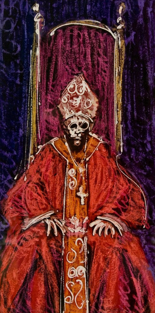 Piezas que retornan a nuestra tradición más ferviente y demoledora, la más clarividente y cruel, la negra y odiosa leyenda que fue y es una realidad con la que nuestra mirada se encuentra a diario, incluso no ceja de acosarnos y amonestarnos por no ser cauce de su furor iconográfico y grotescamente mayestático.