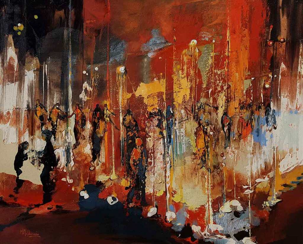 La andaluza MALDONADO tiene claro que su pintura tiene que estar viva mediante la fórmula de que el color -impresionista o salvaje-se manifieste en todas sus gamas y mixturas, incluso en sus delirios emanados de una realidad que todavía respira debajo de todos los rayos cromáticos.