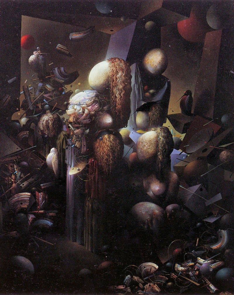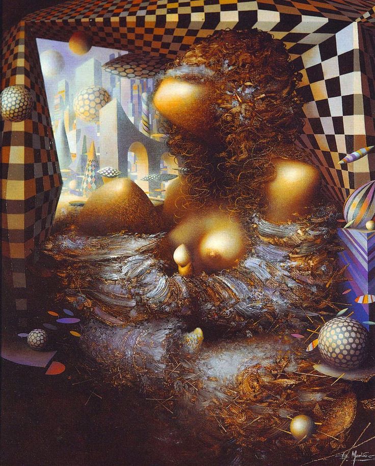 - Tanto su conjugación cromática como la solidez de su dibujo e imaginación festejan la cima que han alcanzado y devuelto a la realidad, a una objetividad que se asienta en un tiempo indefinido y en un espacio imposible de encontrar.