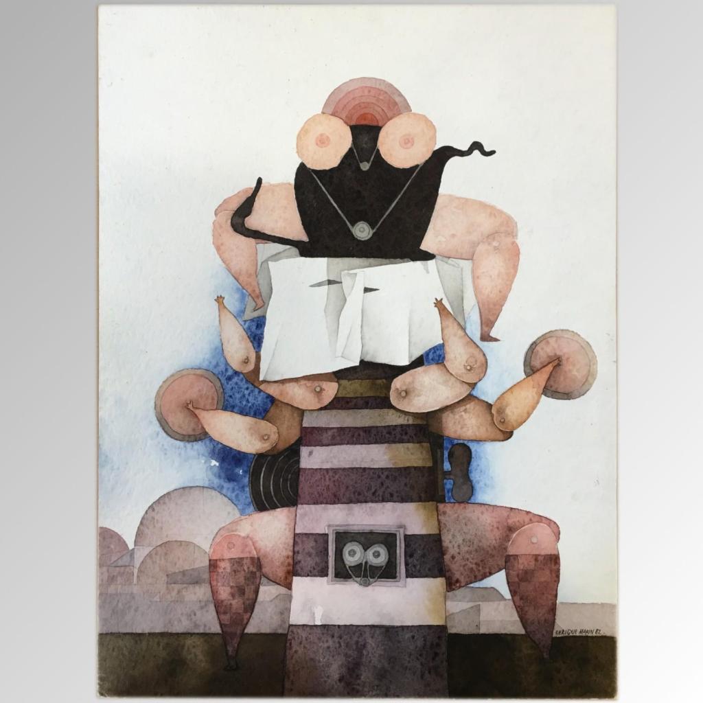 - En la obra del sevillano MARÍN han desaparecido todas las dudas, pues no le hace falta el equilibrio para el logro de unos hallazgos plásticos que son la explicación de un mundo que agitaba en su interior.