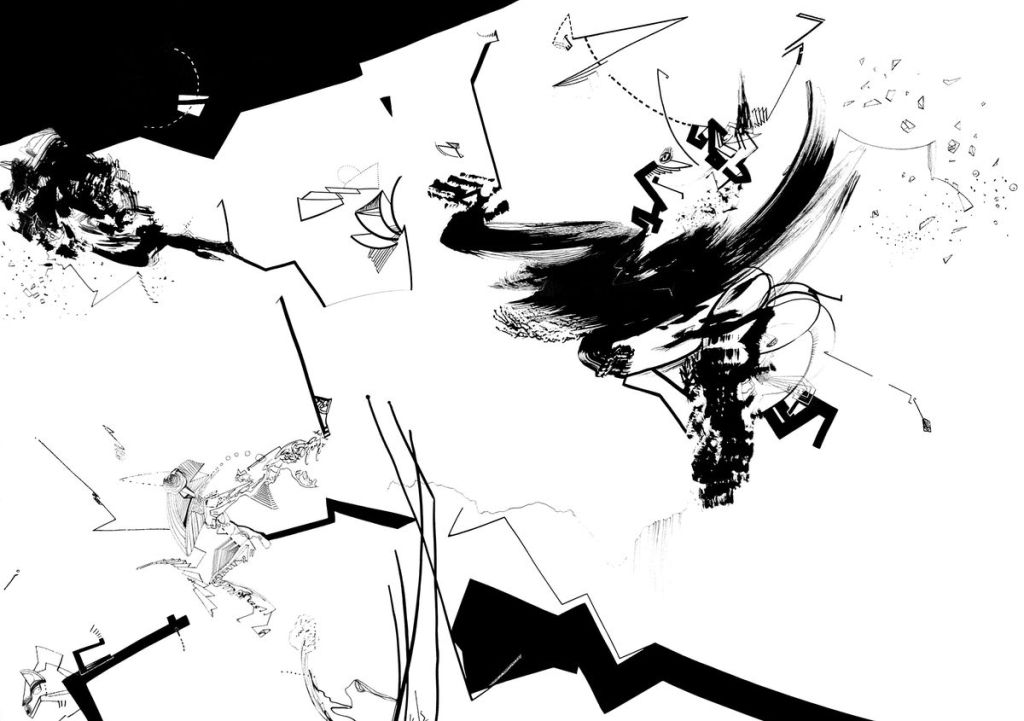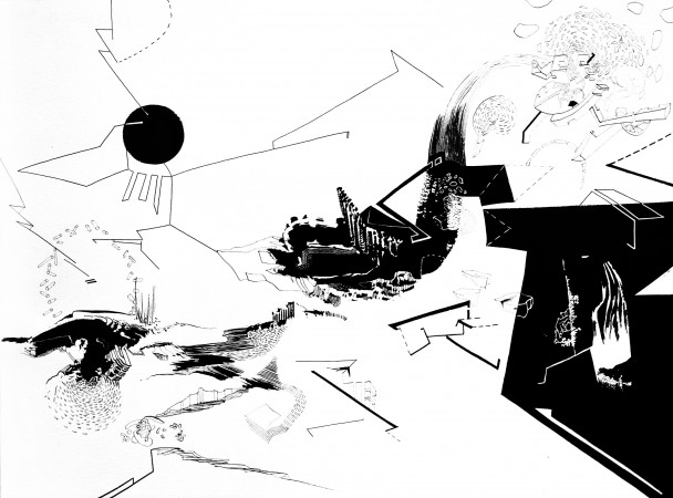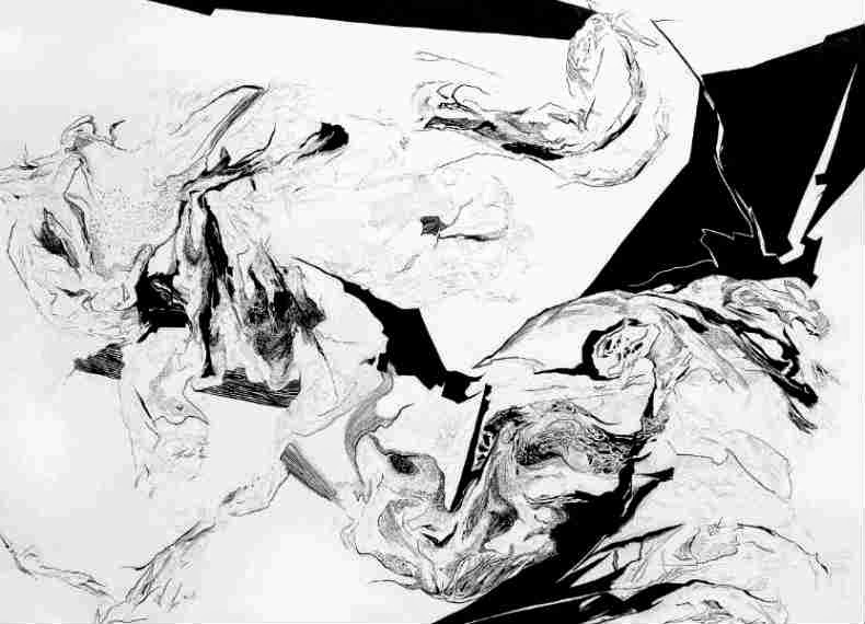 Hay una lluvia de contrastes, de pasajes ignotos, diversas escalas, continuos vacíos entre topografías enigmáticas que se acercan o se alejan, se muestran y se ocultan, dibujan y se esfuman, deshacen las formas o las vuelven a su origen mutante, a su pensamiento entre la geometría y su reverso.