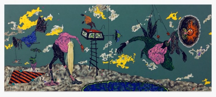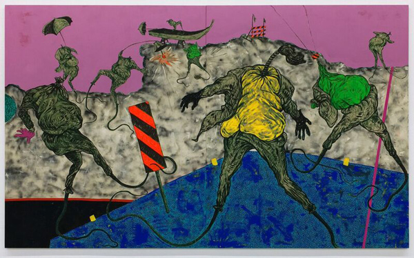 Además, su pintura es la base de unas instalaciones que se conjugan y asocian de una manera delirante, incorporando personajes con cabeza o sin cabeza, que vuelan o caminan, que no revelan su identidad porque nunca la han tenido.