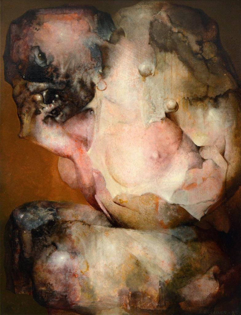 - El andaluz OLIVARES no limita ni acota la carne, deja que inunde el espacio, que su horror erótico sea el trayecto desde Rubens hasta el presente, que su penetración en gamas casi monocromáticas nos infunda atracción y descalabro.