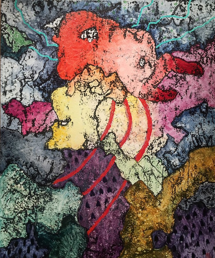 Parecen por ello organismos que toman vida con la destilación del color, con la masa pictórica fragmentada impregnando la materia con un lenguaje añejo, de resonancias esculpidas y sígnicas.