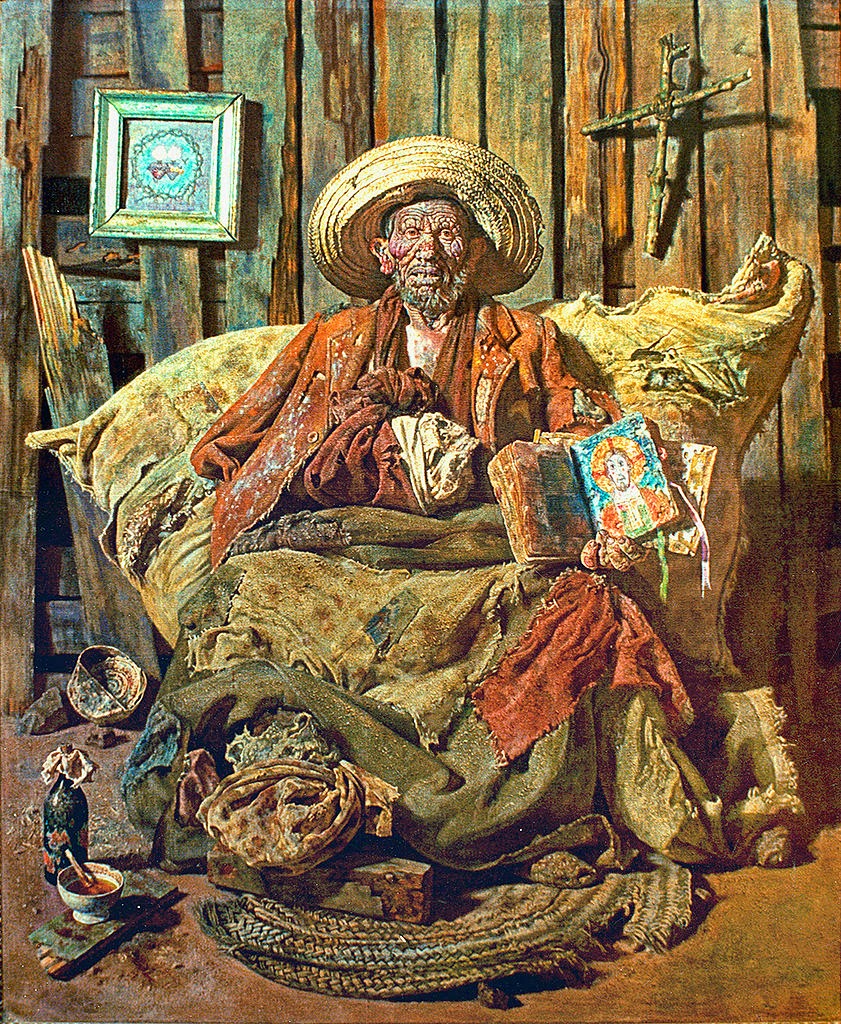 - Solamente un artista tan excepcional como PRIETO y tan español como él, puede alcanzar en su obra un virtuosismo tan dramático, profundo y negro. Su sentido plástico va más allá del realismo y del tenebrismo, es puro y forma parte de un pensamiento que enlaza con una metafísica existencial que no tiene más orden que su propia visión cósmica.