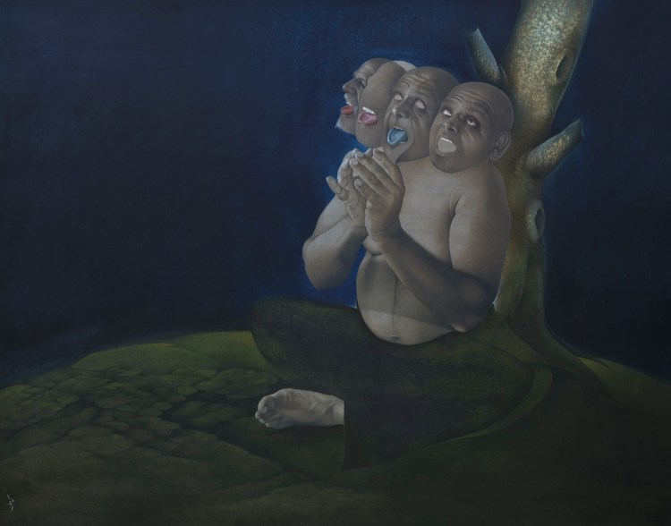 Desde Oriente a Occidente, el pakistaní HASAN, de inicio miniaturista, investiga fisonomías que mediante su concepción plástica -muy virtuosa y minuciosa- muestran el sino de su existencia, sin que ello le impida entregarse a una senda fantástica entre el cielo y la tierra.
