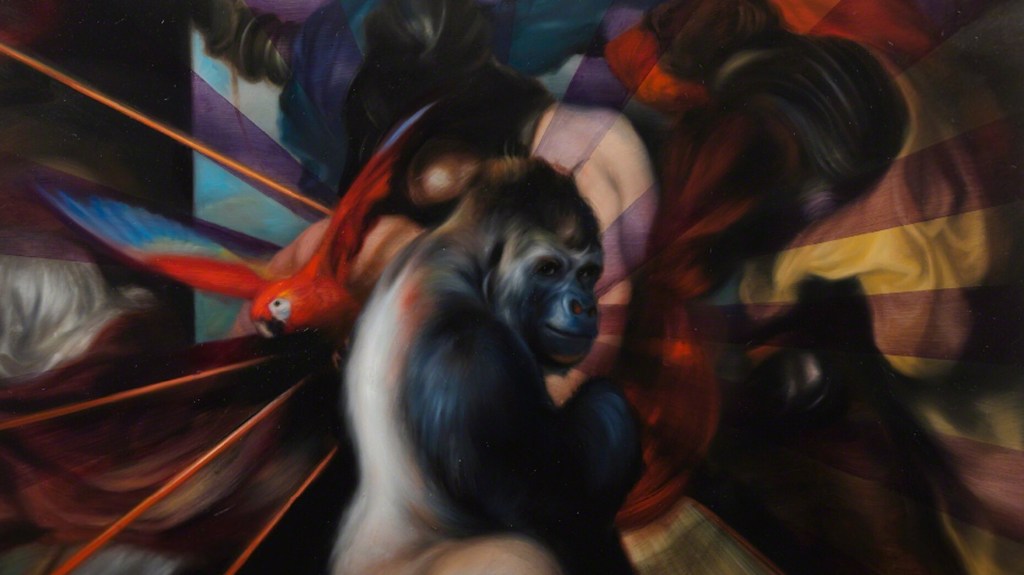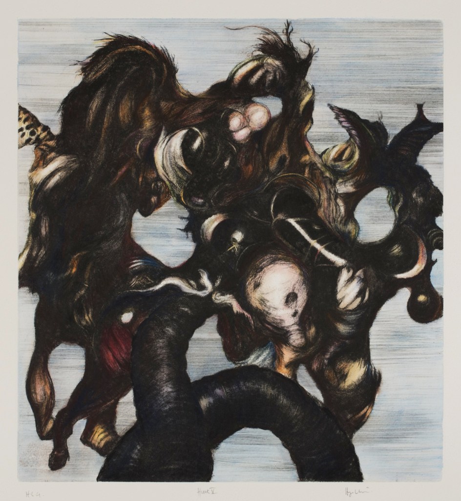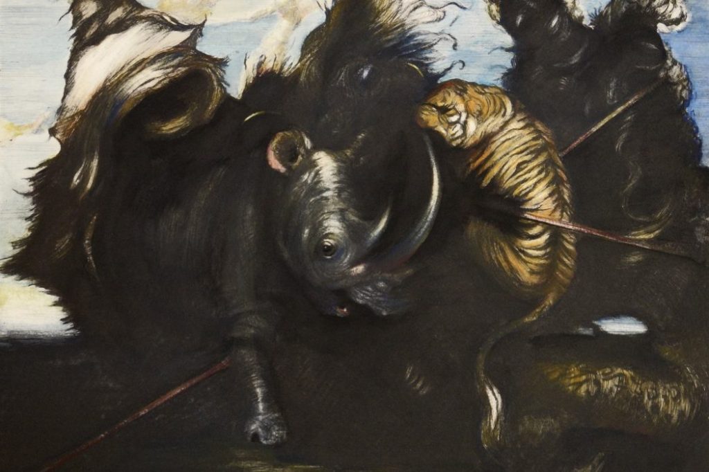 - La pintura del inglés Wilson rescata toda una saga de ferocidad que ha sido objeto de una plasticidad milenaria, y la vuelve a recrear hasta que aparezca en una nueva dimensión.