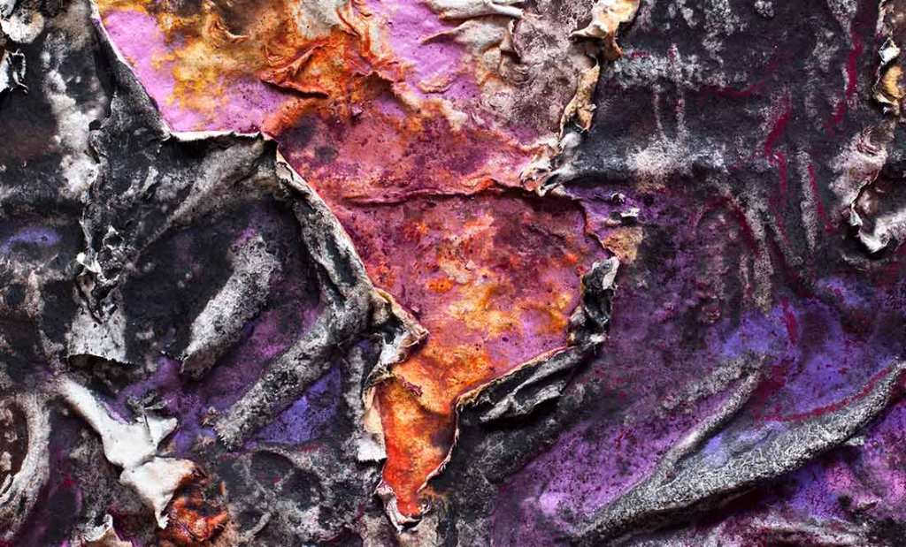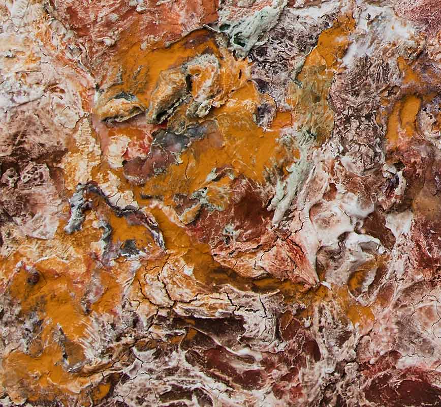 El francés VANNI se remite a la naturaleza para crear otra con mayores resonancias de texturas y colores, de engrudos, arrugas, fisuras y roturas por el paso de un tiempo clemente con ella.