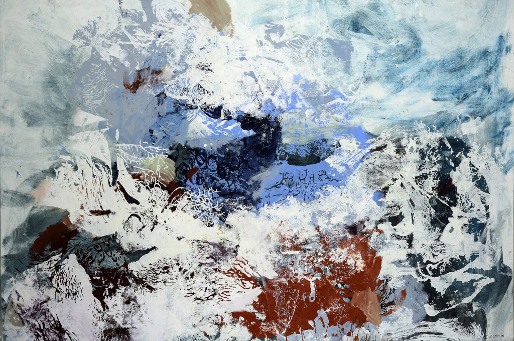 Depura el sentimiento de una realidad en una abstracción fragmentada que da luz sonora al espacio, creando una atmósfera de transparencias, veladuras, manchas y nebulosas a modo de albas y amaneceres.