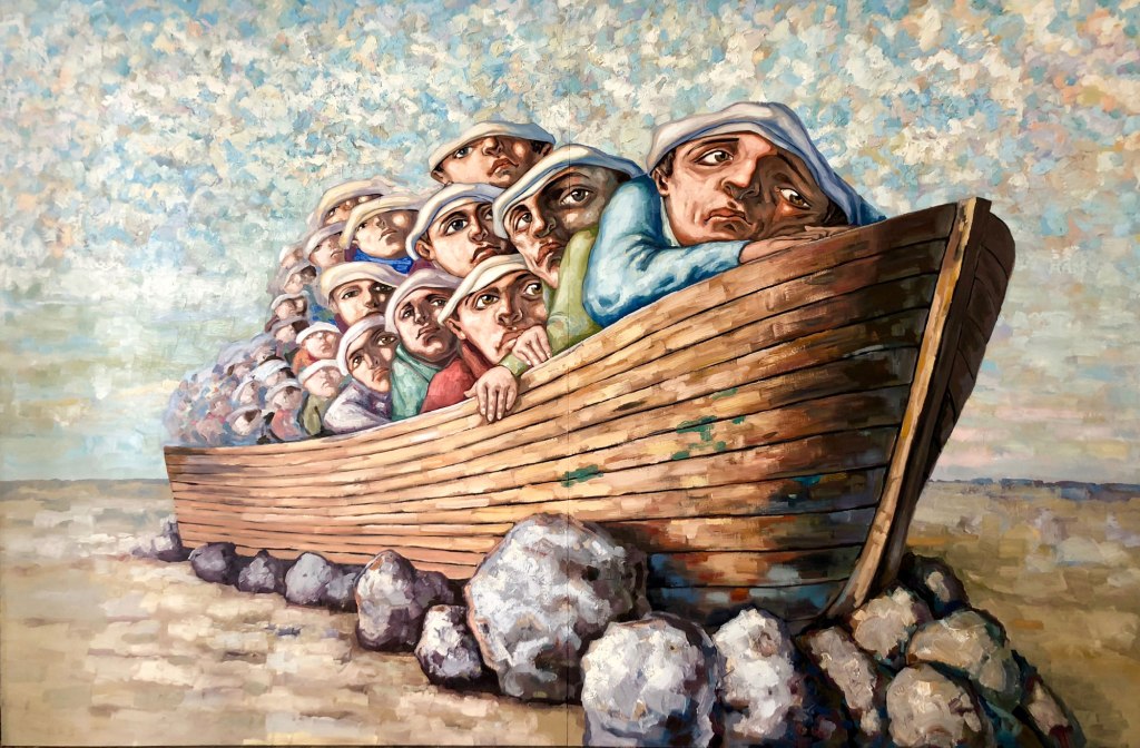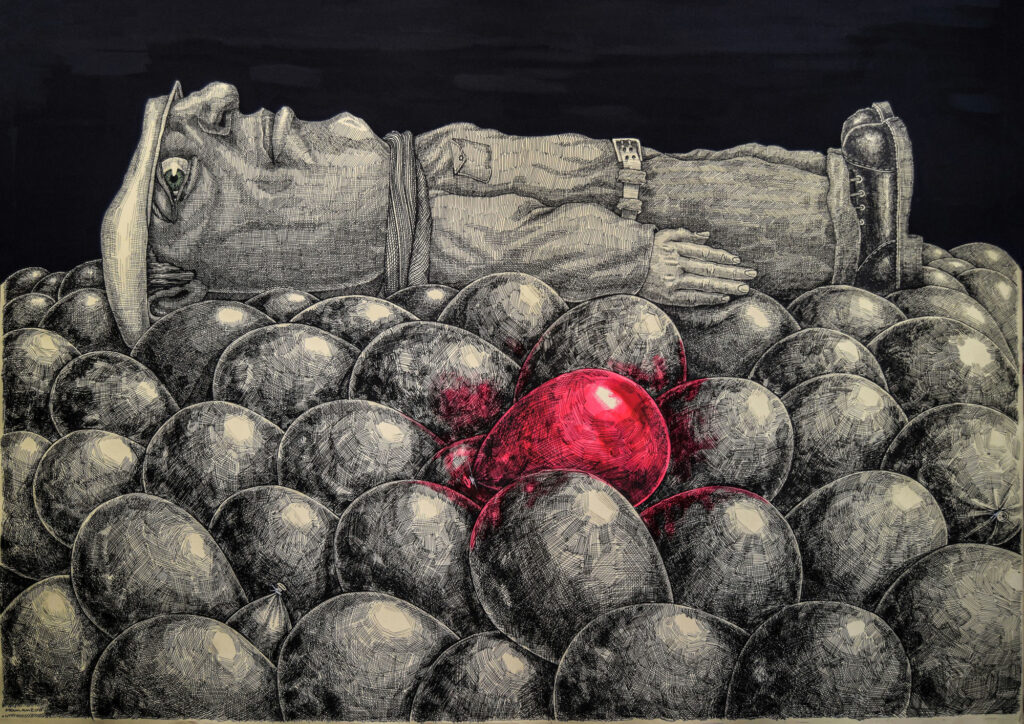 El repertorio pictórico de este artista nace de una entraña vigorosa y se expresa con la vehemencia plástica de algo que está sucediendo a una humanidad aterrorizada y desventurada.