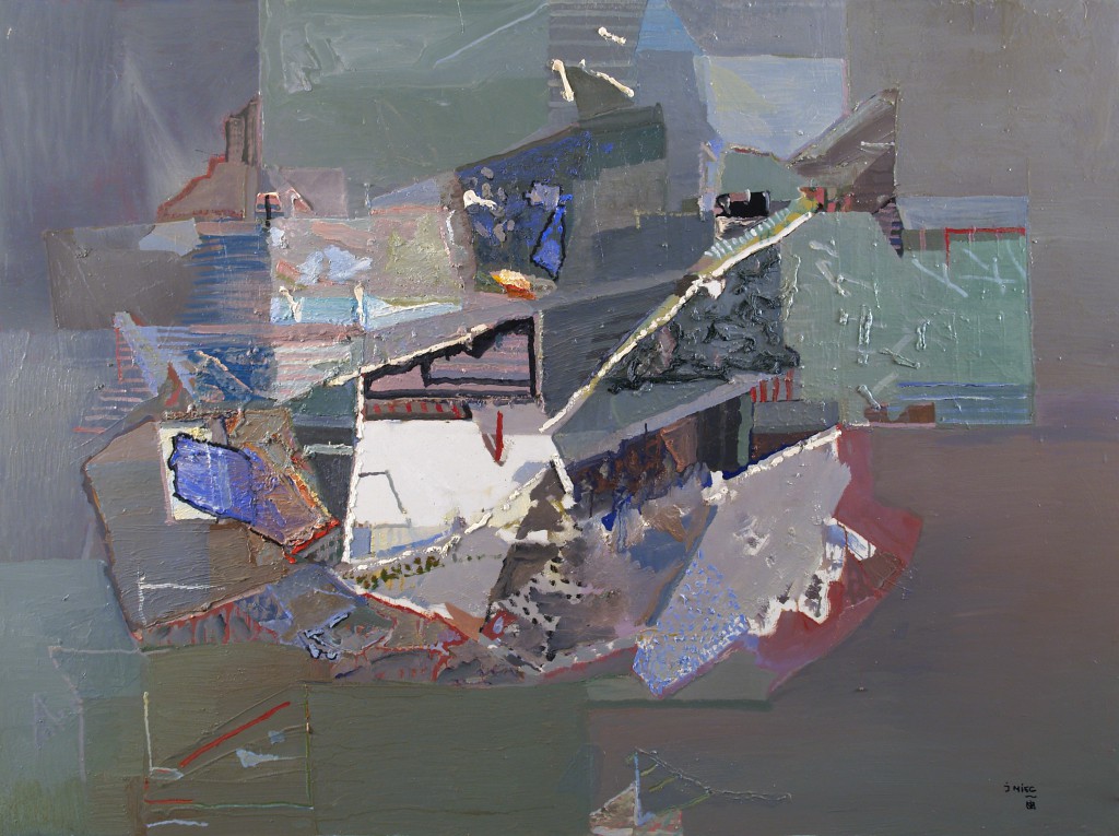 Así es como el vasco Mieg procesa capas y rotos, acentuándolos a través de unas sinuosidades cromáticas que le infunden el caos de un pensamiento visual que se desgaja parsimoniosamente.
