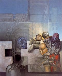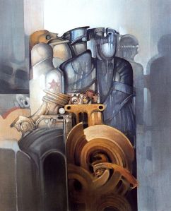 Nos llega un mensaje plástico visionario y futurista y lo absorbemos en toda su magnitud, con la esperanza de que reine la piedad y haya acabado la locura asesina y la malicia. Nuestra capacidad visual queda absorta por el hechizo de ese deslumbramiento que concilia rigor, estructura compositiva equilibrada e integrada, envoltura cromática, virtuosismo indeleble, imaginería e ilusionismo.
