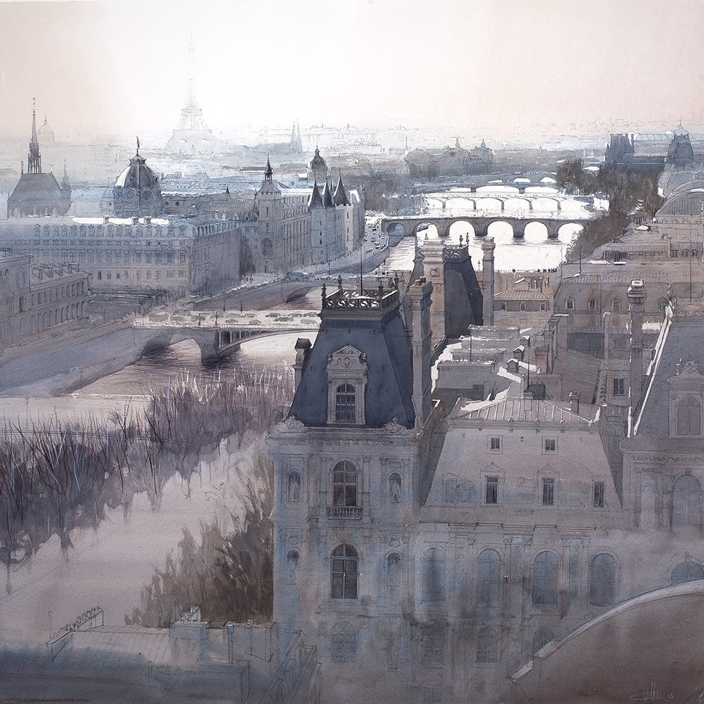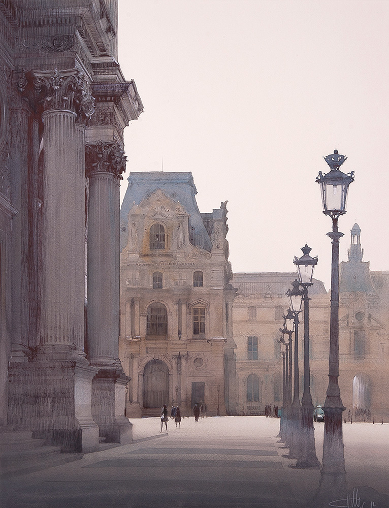 Es lo que el francés Villeneuve ha sabido hacer magistralmente en sus acuarelas, dotarlas de una impresión viva y de una fuerza constructora que atesora todos los tiempos y todas las edades.