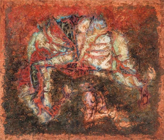 La textura hendiendo y rascando permite que las venas y arterias adquieran una vivencia visual consagrada a plasmar el trabajo del tiempo, su lento penetrar hasta concebir la forma.