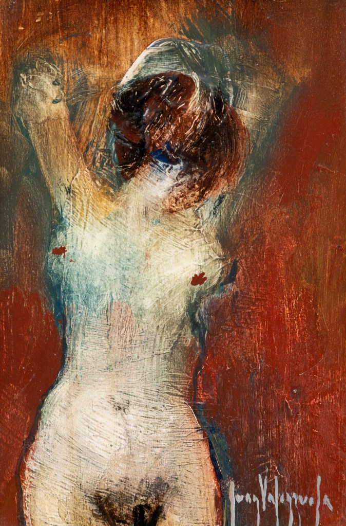 Pintura densa y barroca heredera de la tradición tenebrista española, la obra del madrileño VALENZUELA, con sus densos empastes, se nutre de fuentes informalistas y expresionistas.