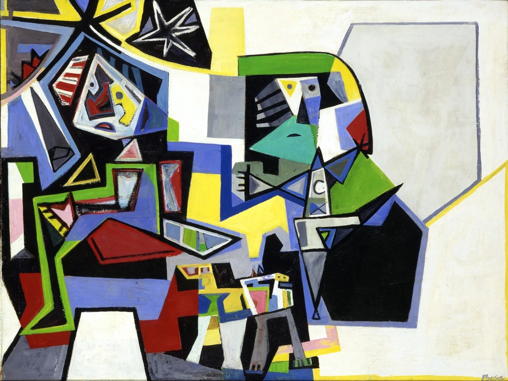 Geometría, rescoldos figurativos, cromatismos fulgurantes, conforman una obra casi cosmográfica y con la virtualidad de una visión sintética que abre espacios y cierra tiempos.