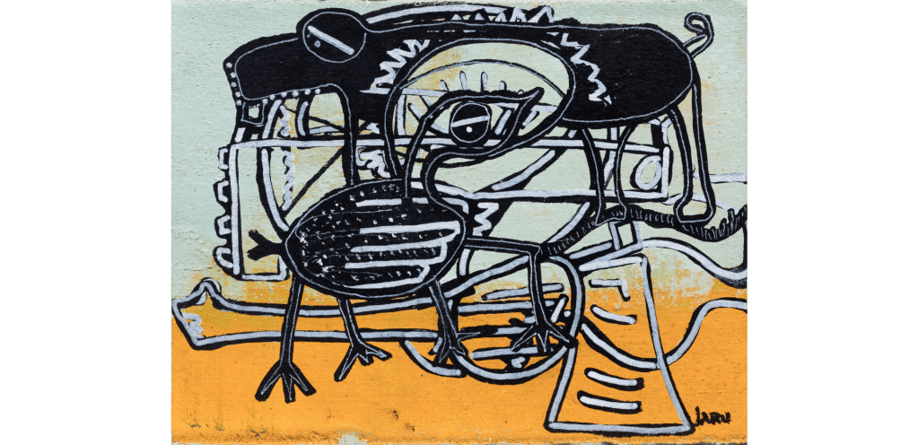 Su pintura da con la clave plástica de forma, color y pensamiento para ser una visión inquietante al mismo tiempo que un desarrollo delirante entre lo mítico primitivista y lo contemporáneo.