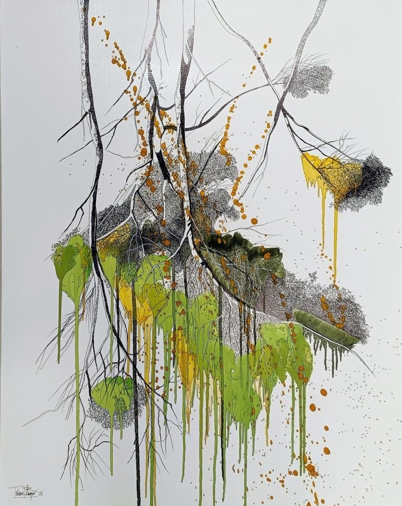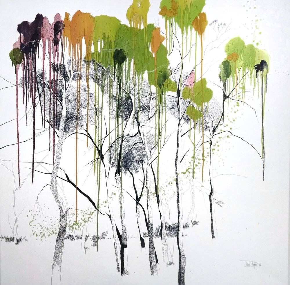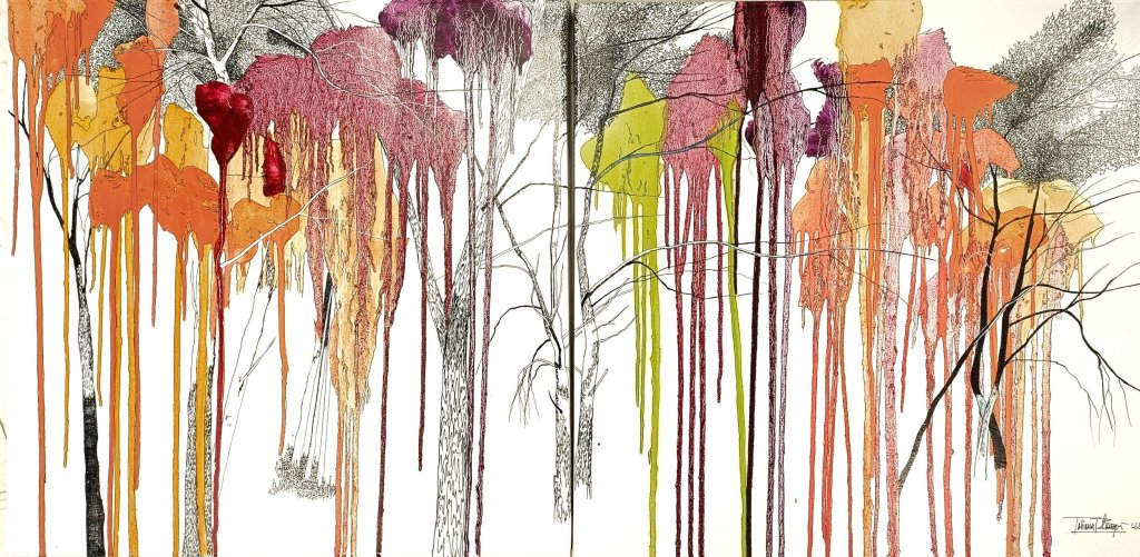 Su cosmovisión es una cita con la estética del origen ocupando ese espacio que le estaba prometido, esa confluencia de formas y tonalidades que tiene existencia armoniosa pero amenazada y que, sin embargo, ella sabe como rescatar.