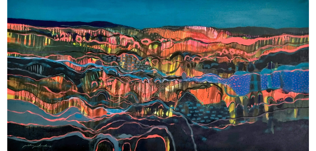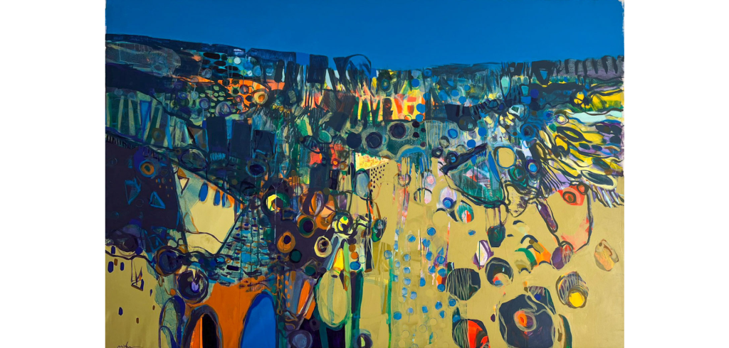 Los paisajes de la sudanesa MOHHMMED exudan la virtualidad física de una tierra africana incógnita todavía, que refleja así su luz, su geología, sus vetas, sus superficies y su longevidad. Las gamas cromáticas hacen que sus huellas queden palpables y crepitantes.
