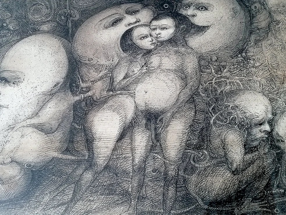 El frencés PONS fue un dibujante excepcional capaz de transcribir sus propios sueños, pero elevándolos a una fantasía que abarca los confines más extremos de lo humano fuera de sí mismo.