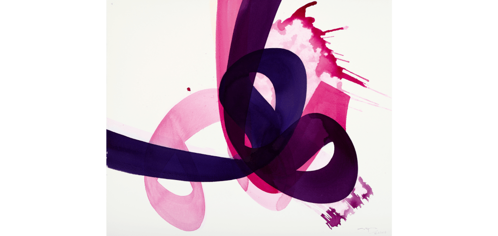 Los trazos de fuerte luminiscencia atraviesan un cielo abierto y dejan un iris que se va convirtiendo en huella y señal, en una plástica del ensueño anidando en una realidad de vértigo.