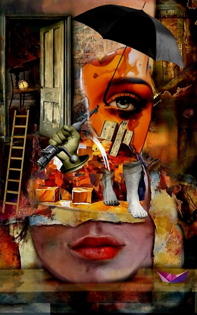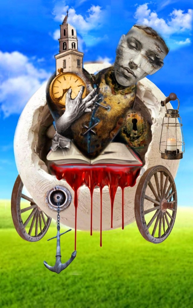 Por eso, en sus obras en forma de collages percibimos los símbolos figurativos y plásticos de su propia biografía y de su mismo entorno, pero manejando sabiamente un imaginario en que las distintas gamas cromáticas se ajustan luminosamente al designio que se ha propuesto.