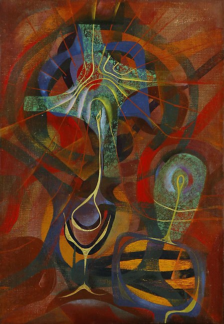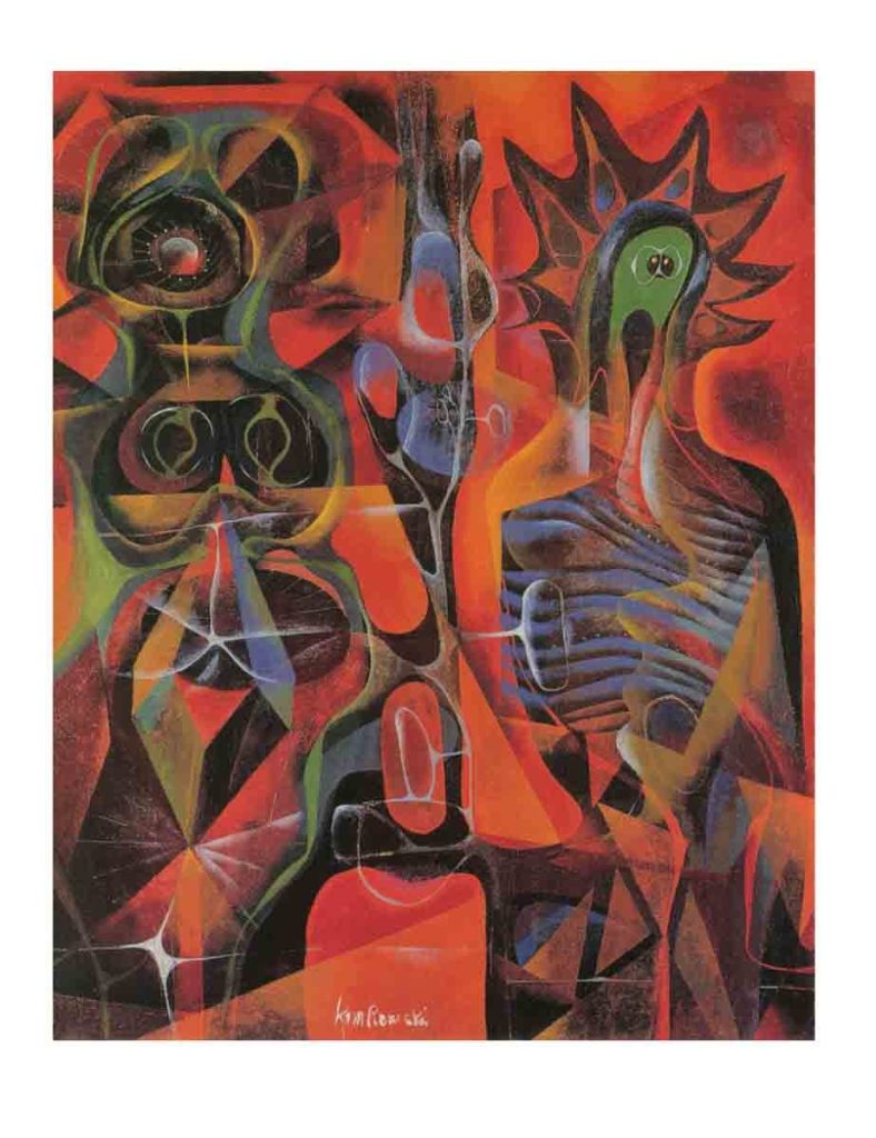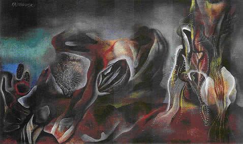 - En la plástica del polaco WOSTAN penetran ambos en la dimensión y configuración del engendro en la superficie, que absorbe todo lo que se encuentra en su camino y se embellece con la corporeidad magnificada por su condición de ser fruto una humanidad alienada.