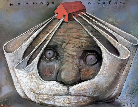 fundamentalmente referidos a temáticas contemporáneas, ya sean sociales, políticas, económicas y culturales. Y tienen mucho de parodia, de pintura esquemática e inocente, para así ensamblar de forma más convincente una imaginería alegórica y de fábula de mercado los domingos por la mañana.