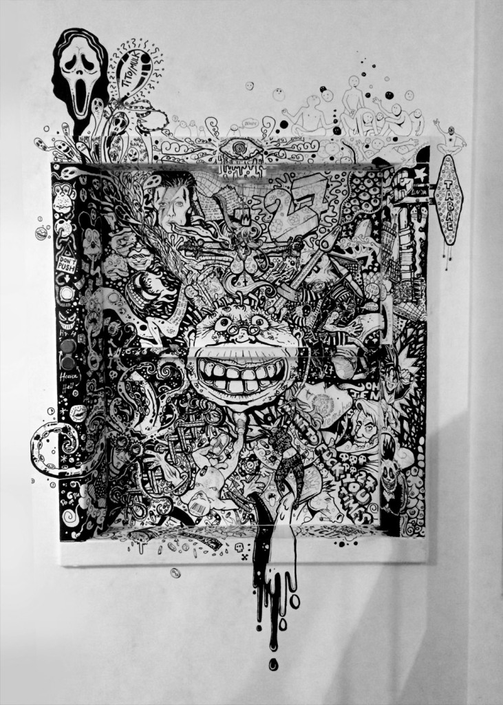 La acumulación de imágenes son por sí mismas un relato viviente que definen color, luz y un lugar en el marco de la superficie que a nosotros, espectadores, nos permite tomar nuestro tiempo en descifrar la volubilidad plástica de figuraciones o abstractos figurativos que siembran de proyecciones nuestra mirada.
