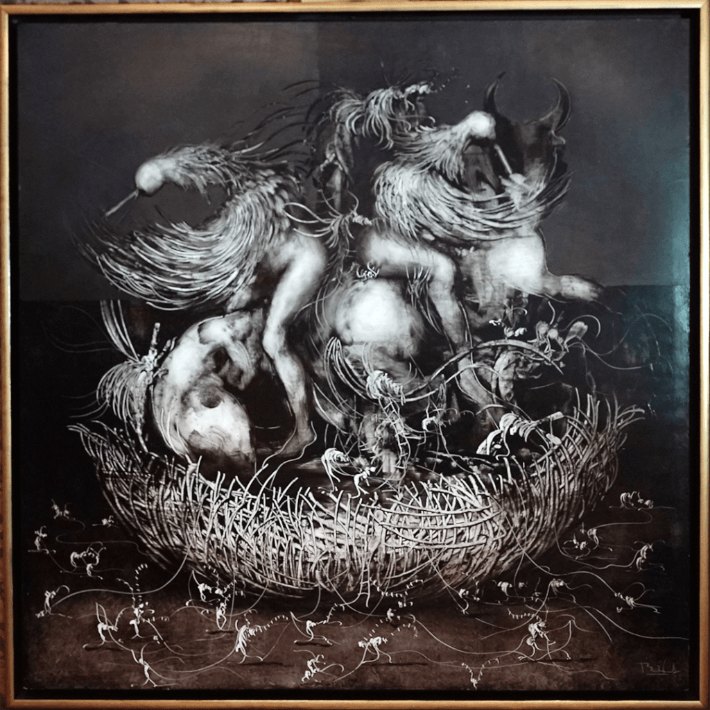 Su obra nos señala que cuando a la abstracción se compagina con una figuración virtuosamente perfilada, existe una visión que simboliza el halo de una realidad que nunca deja de engullirse.