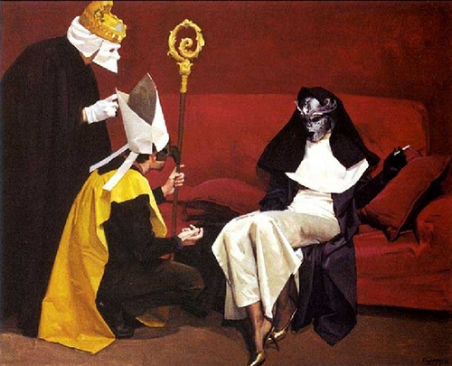 No incurro en falsos preciosismos, no lo creo, me limito a insertar mis señas e identidades figurativas en un sistema de representación que avale mi personalidad pictórica. Ni tampoco construyo un arte espectáculo, únicamente es un empeño en la fijación de creencias, intuiciones y sensibilidades.
