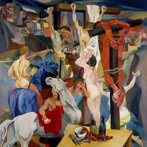 • Cuando se mienta al italiano GUTTOSO se habla de pintura social. Pero conforme a otra nomenclatura podríamos incurrir en la heterodoxia de considerarlo un renacentista de ahora, que hace de las imágenes y las irradiaciones que emiten una apoteosis del mundo y de su historia plástica. Aunque quizá ambos planteamientos no sean antagónicos. No lo sé.